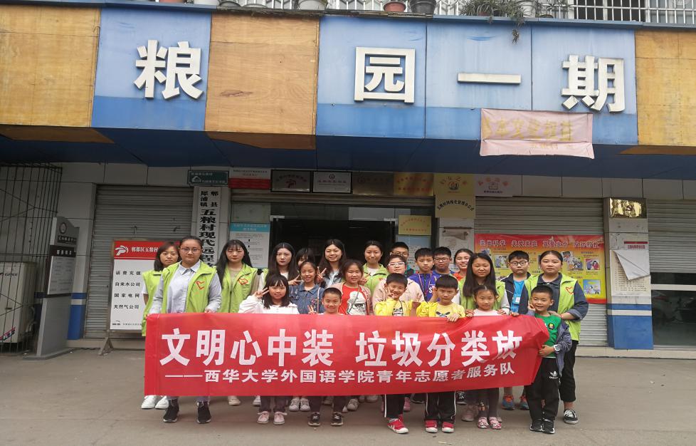 2019年4月14日,西华大学betway88西汉姆联青服队在五粮村社区举办了以“垃圾分一分,环境美十分”为主题的垃圾分类活动,为进一步宣传垃圾分类,呼吁社区儿童养成垃圾分类意识。通过为社区儿童开展主题活动,在社区指定位置张贴海报、悬挂横幅等形式面向社区居民普及垃圾分类的相关知识,并产生了良好的社会效益。